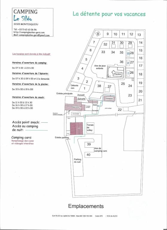 Le camping dispose de 32 emplacements nus autour de la piscine sécurisée et de l'aire de jeu pour les plus jeunes.